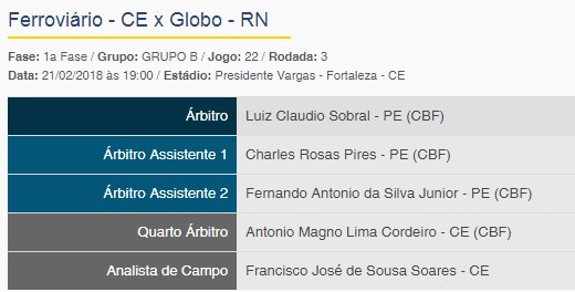 Arbitragem para Ferroviário/CE x Globo/RN pela Copa do Nordeste